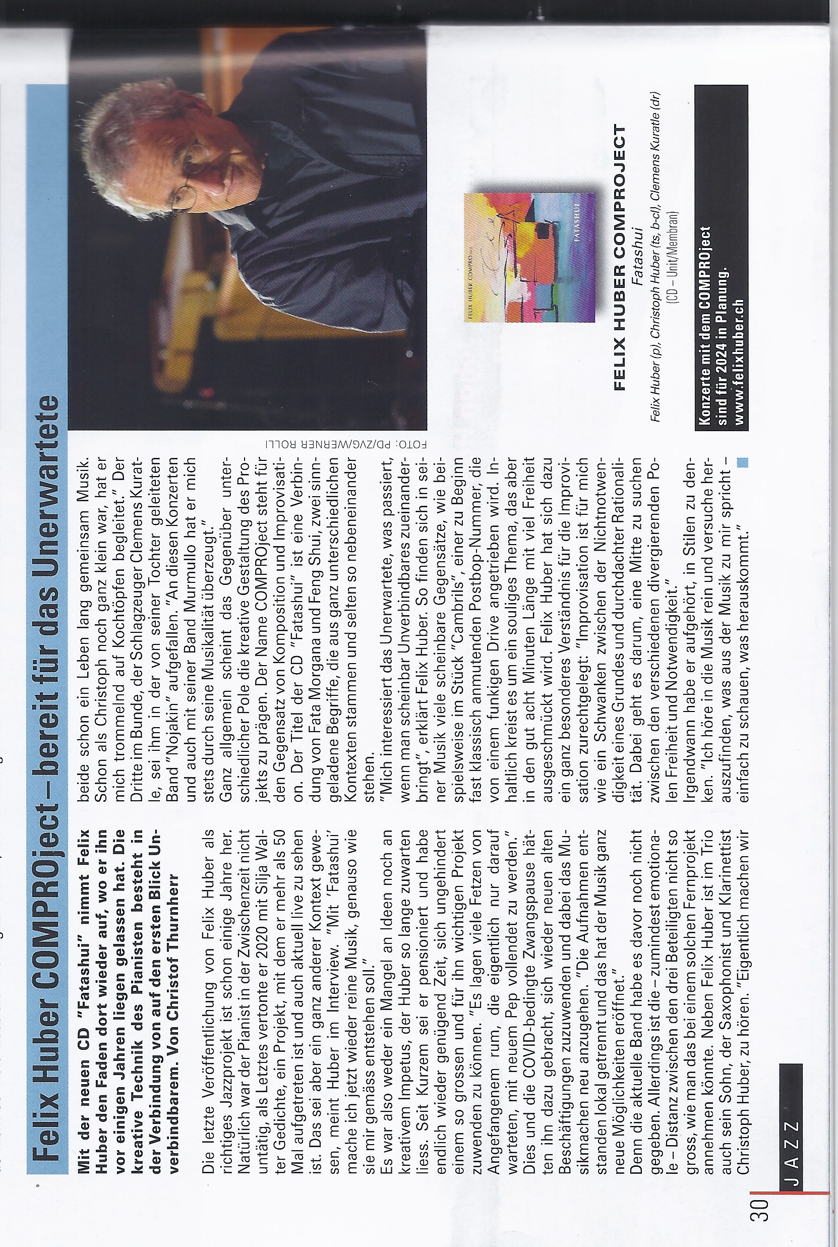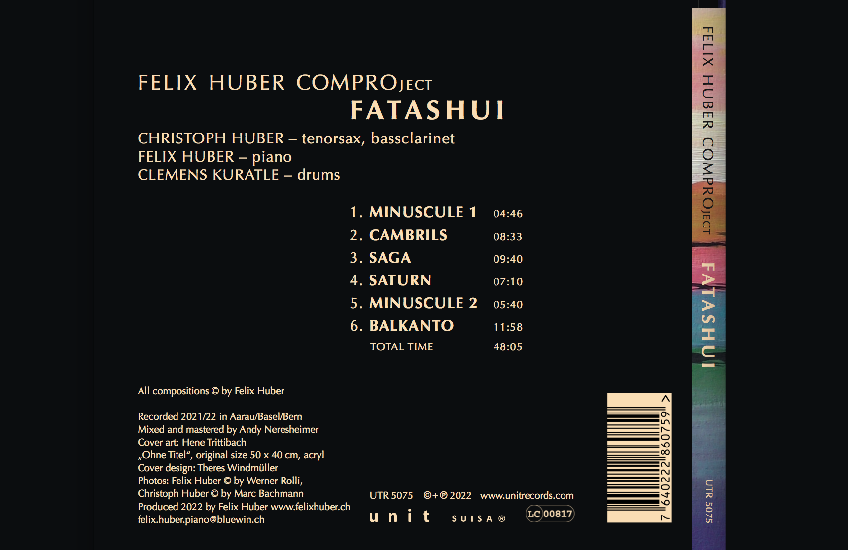 Christoph Huber (ts/bcl), Felix Huber (pno/comp), Clemens Kuratle (dr)
